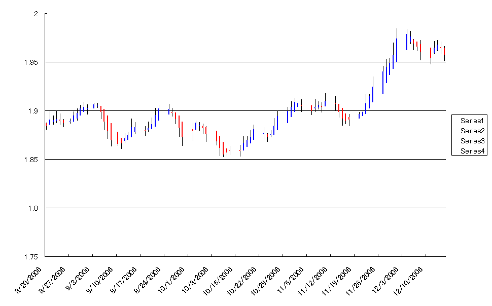 ポンドドルコマ足が小さい陽線へ転換しました。