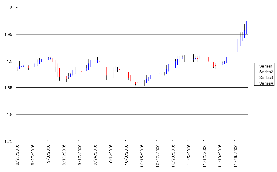 ポンドドルのコマ足では連日強い陽線がでてます。
