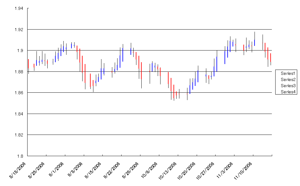 ポンドドルのコマ足はポンドが弱くなって陰線が続けてついてきてます。
