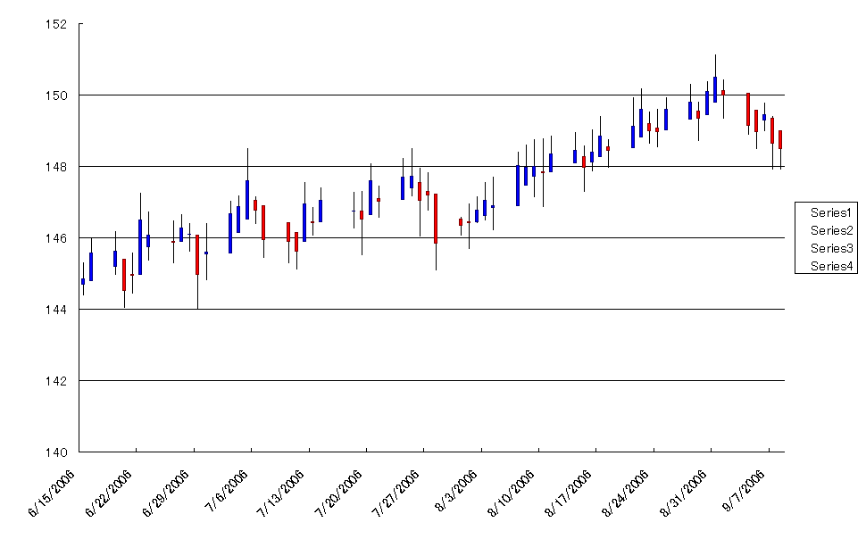 それからせっかくデータ(yahooファイナンス)が山のように取れたので 平均足もポンド円、ユーロ円で作ってみました。下はユーロ円です。
